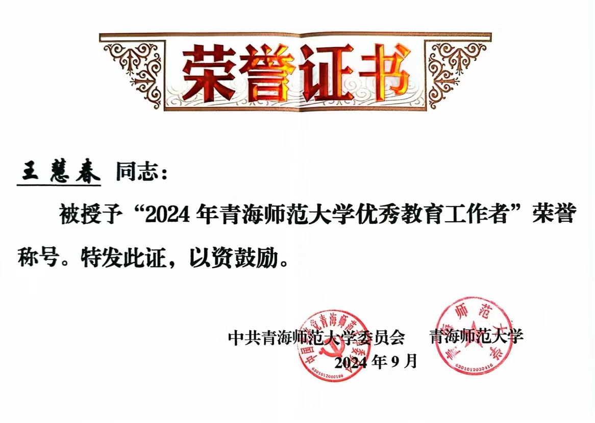 王慧春,女,1974年生,青海海东人,陕西师范大学有机化学博士,现为bv伟德国际1946教授,博士生导师。2024年被授予伟德国际1946官方网站“优秀教育工作者”荣誉称号。